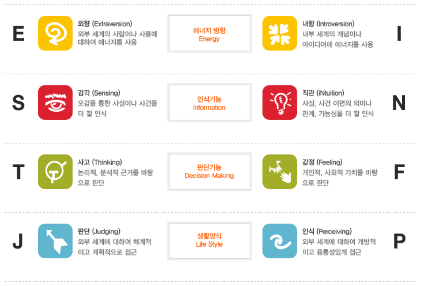 ▲ MBTI 4가지 선호지표이다. (출처=어세스타 온라인 심리검사 홈페이지)